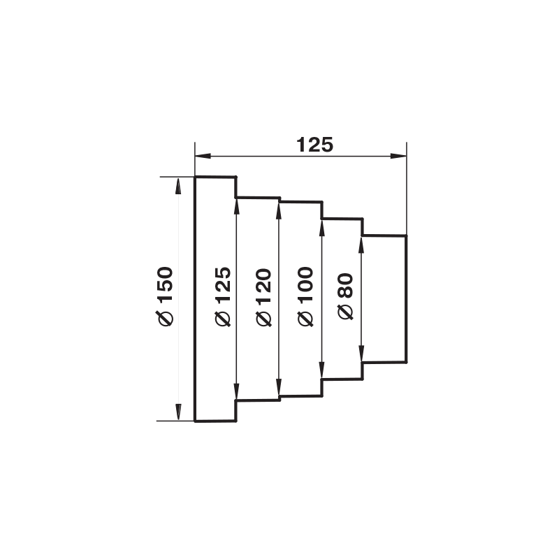 - Присоединительные диаметры: 80-100-120-125-150 мм.