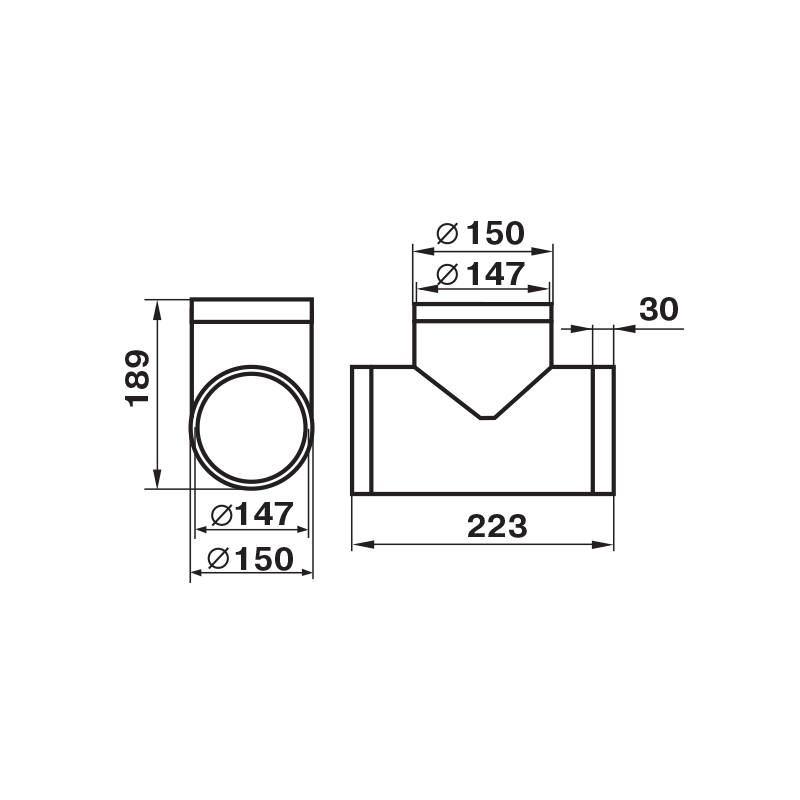 Тройник позволяет соединить 3 воздуховода одного диаметра под углом 90°.