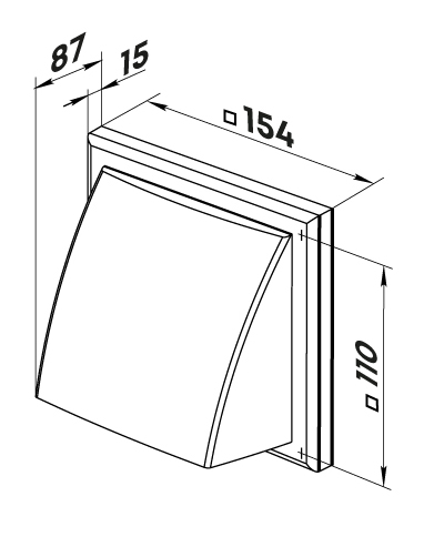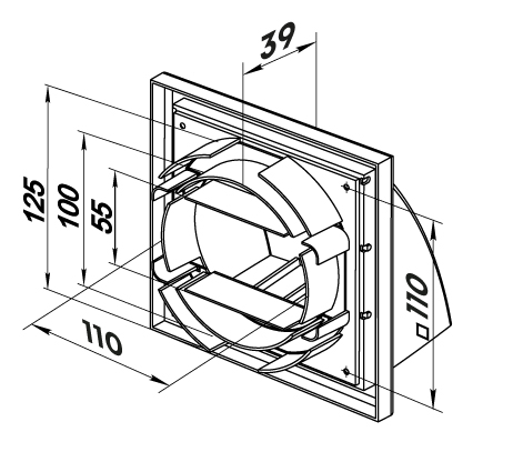 - Оснащен универсальным соединительным фланцем для монтажа с воздуховодом диаметром 100, 125 мм или сечением 55х110 мм.