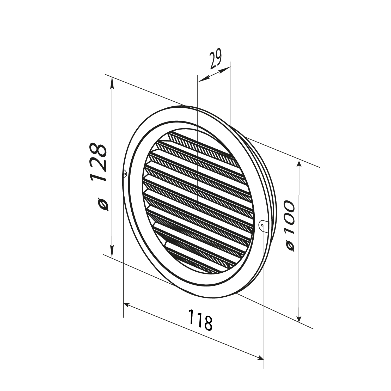 - Фланец решетки - 100 мм.