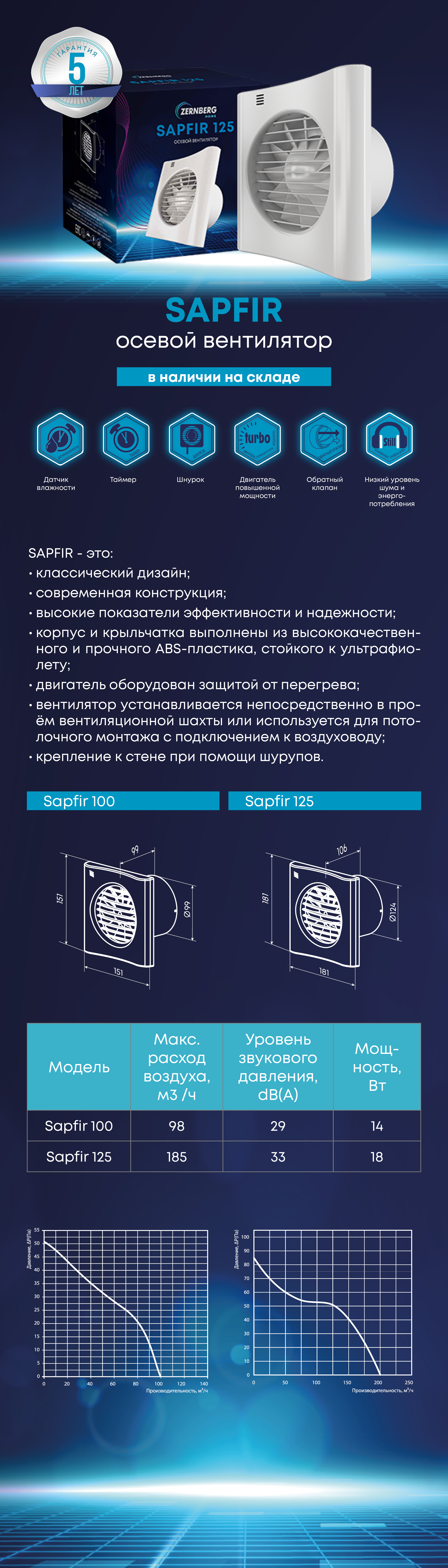Вентилятор Sapfir 100 STILL Н - датчик влажности. Если влажность в помещении превысит установленную на датчике значения 60-90%, то вентилятор автоматически включится и продолжит работу до тех пор, пока влажность не придет в норму; далее вентилятор отрабатывает время, установленное на таймере и выключается.